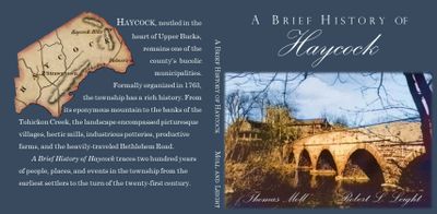 HAYCOCK nestled in the heart of Upper Bucks, remains one of the county's bucolic municipalities. Formally organized in 1763, the township has a rich history. From its eponymous mountain to the banks of the Tohickon Creek, the landscape encompassed picturesque villages, hectic mills, industrious potteries, productive farms, and the heavily-traveled Bethlehem Road. A Brief History of Haycock traces two hundred years of people, places, and events in the township from the earliest settlers to the turn of the twenty-first century.