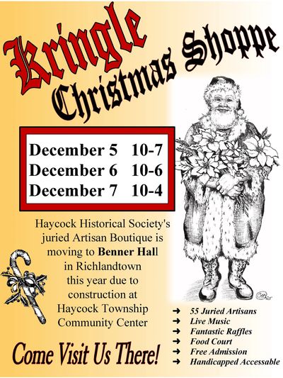 Due to circumstances beyond our control, the Haycock Township Community Center's main hall will not be available our annual fundraiser, Kringle Christmas Shoppe in 2025.